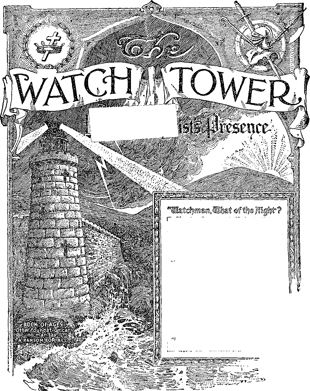 THIS Journal is one of the prime factors or instruments in the system of Bible Instruction, or "Seminary Extension", now being presented in all parts of the civilized world by the Watch Tower Bible & Tract Society, chartered A. D. 18S4, "For the Promotion of Christian Knowledge". It not only serves as a class room where Bible students may meet in the study of the divine Word but also as a channel of communication through which they may be reached with announcements of the Society's conventions and of the coming of its traveling representatives, styled “Pilgrims”, and refreshed with reports of its conventions.