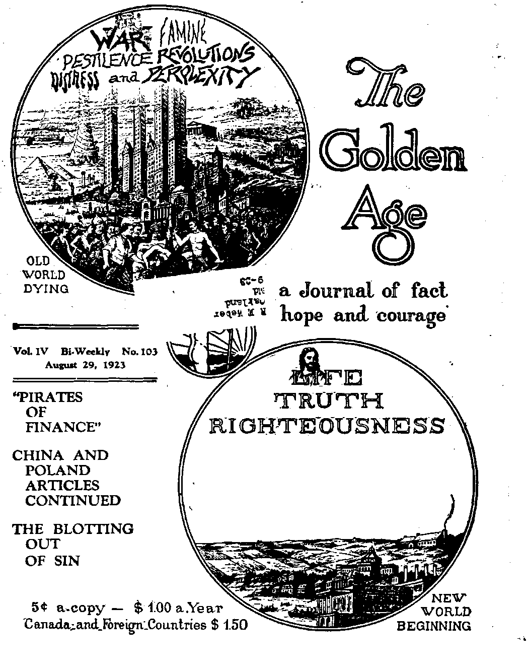 “Religiously speaking, the denominational church systems are raging upon each other. The modernists have repudiated God’s Word and have denied the great ransom-sacrifice of our Lord. They deny His kingdom, and in turn teach evolution and other God-dishonoring doctrines. The fundamentalists cling to the Bible, and earnestly contend for it. Both sides, however, are allied with the commercial and political powers of the present evil order.