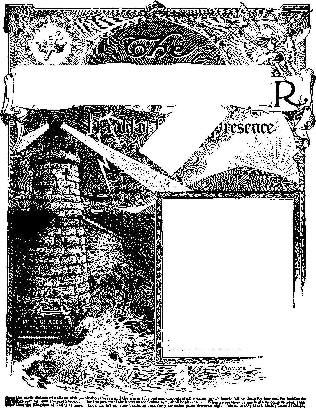 EDITORIAL COMMITTEE: This journal is published under the Bupervision of an editorial committee, at least three of whom have read and approved as truth each and every article appearing in these columns. The names of the editorial committee are: J. F. Rutherford, W. E. Van Ambursh, J. Hbmery, R. H. Barber, E. J. Coward. TERMS TO THE LORD’S POOR: All Bible Students who, by reason of old age or other infirmity or adversity, are unable to pay for this journal, will be supplied free if they send a postal card each May stating their case and requesting such provision. We are not only willing, but anxious, that all such be on our list continually and in touch with the Berean studies.