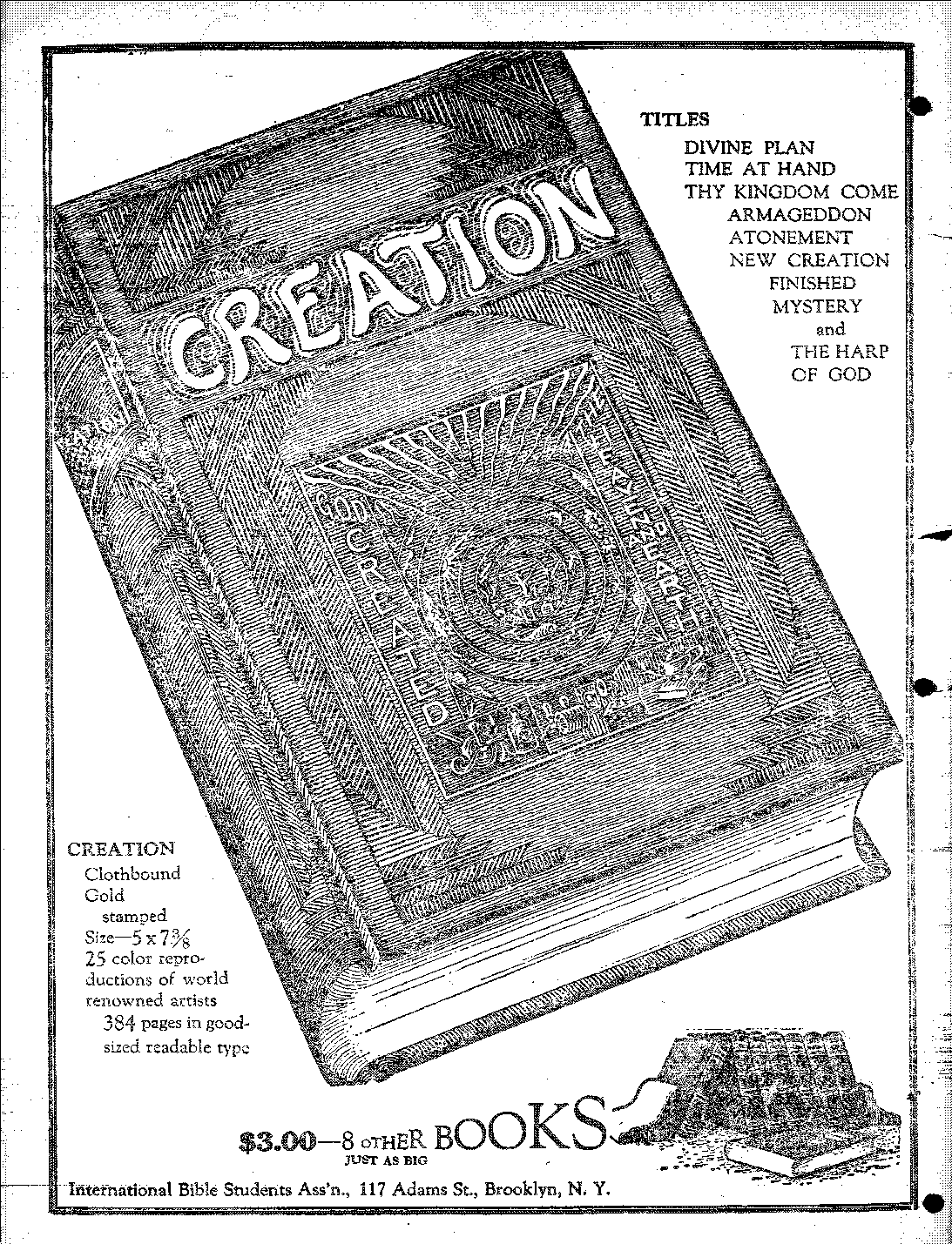 There is abundant evidence concerning the Lord’s second coming and the end of the world that it is now at hand. This matter is fully setu forth in the book above mentioned.