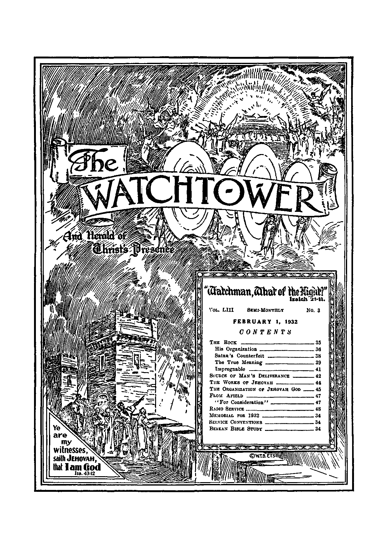 “Know Jehovah’’ Issue of January 1, 1932 Week beginning March 6 ...... H 1-11