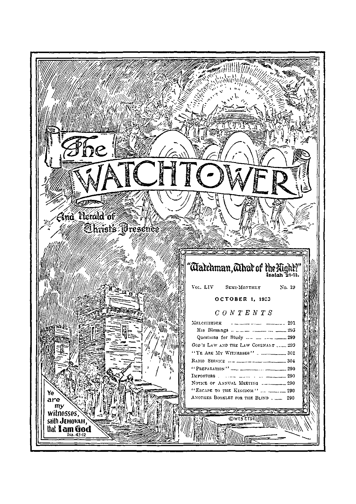 HIS journal is published for the purpose of enabling the people to know Jehovah God and his purposes as expressed in the Bible. It publishes Bible instruction specifically designed to aid Jehovah’s witnesses. It provides systematic Bible study for all its readers and supplies teachers to aid any person or company of persons engaged in sincere Bible study. It publishes suitable material for radio broadcasting and for other means of public instruction in the Scriptures.