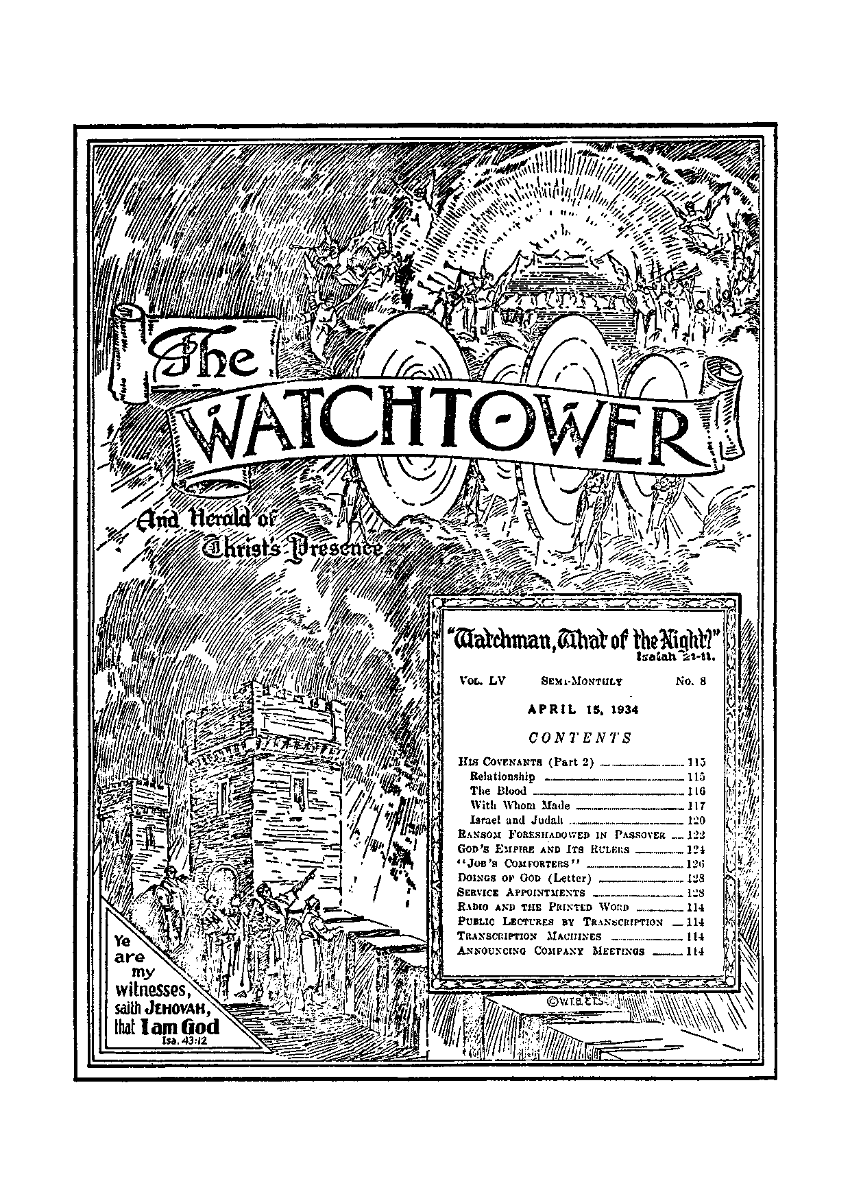 “The apostle then quotes from the words of the prophet Jeremiah and states a part of the terms or provisions of the new covenant. “For this is my covenant unto them [that is to say, spiritual Israel, represented on earth at the present time by the faithful remnant], when I shall take away their sins.” Spiritual Israel had sinned and stood guilty of iniquity before God, and God was displeased with them; and such condition existed at the time of the coming of Christ Jesus to the temple for judgment, and then it was that God forgave their sins and turned his anger away from them. “And in that day thou shalt say, 0 Lord, I will praise thee: though thou wast angry with me, thine anger is turned away, and thou eom-fortedst me.” (Isa. 12:1) The great “messenger of the covenant”, Christ Jesus, the Judge with all power and authority, had now come to the temple, and he sits in judgment for the purpose of purging the “sons of Levi” and cleansing them from their sins, in order that those sons of God might offer an acceptable sacrifice unto God. that is to say, from that time onward. (Alai. 3:3) The acceptable sacrifice here mentioned clearly is that these people taken out for the name of Jehovah must become Jehovah’s witnesses and, in order to be pleasing to God, must thereafter ‘offer the sacrifice of praise to Jehovah continually, that is to say, the fruit of their lips, bearing testimony to his name’.—Heb. 13:15.