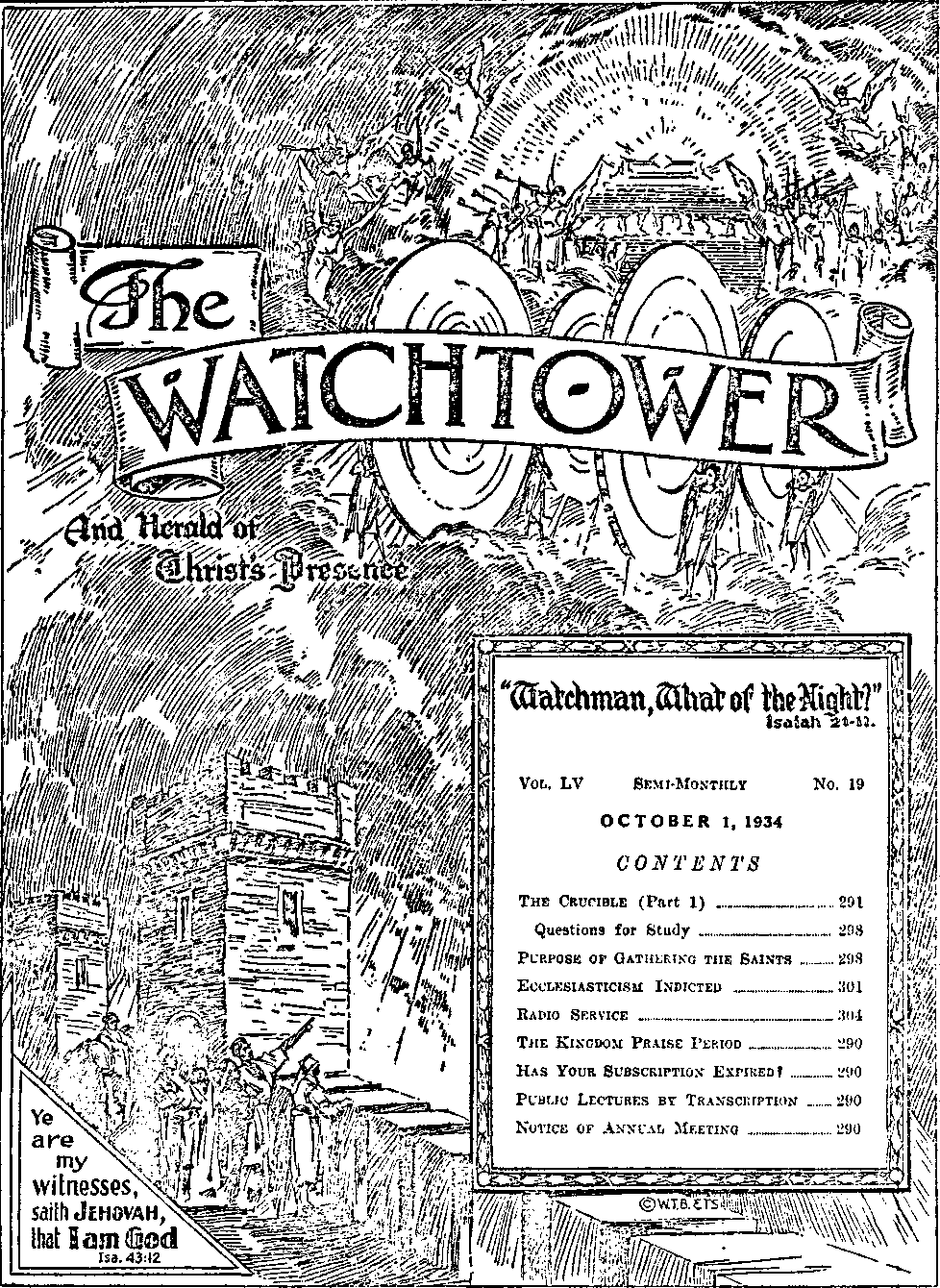 83 In 1929 the Lord made clearly to appear to his people who constitute “the higher powers”, and since then they have been enabled to see clearly that the faithful ones must obey Jehovah and Christ Jesus, who are “the higher powers”, and make no compromise with the wicked organization that rules the world, and which powers are not ordained of God. Jehovah’s witnesses have no inclination to violate any law of the land, and will not do so when that law is in harmony with God’s law; but they will be guided by God’s law and obey his law and trust wholly in him, regardless of results. For this reason the clergy continuously and persistently accuse Jehovah’s witnesses before the political ruling power of the world; and this they do because they are in a conspiracy, led by Satan’s agent Gog, to bring about the destruction of Jehovah’s witnesses.—I’s. 83:2-5.