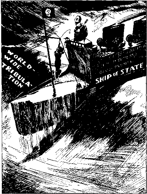 Satan, the god of this evil world, seeing that his governing factors on earth were weakening each other, sought means to cement the people and the rulers in a closer compact. During the World War he caused an appeal to be made to the patriotism of the common people, by having them adopt the slogan: “The War will make the world safe for Democracy.” The purpose was to gain for the military the support of the democratic element of the people. God, through