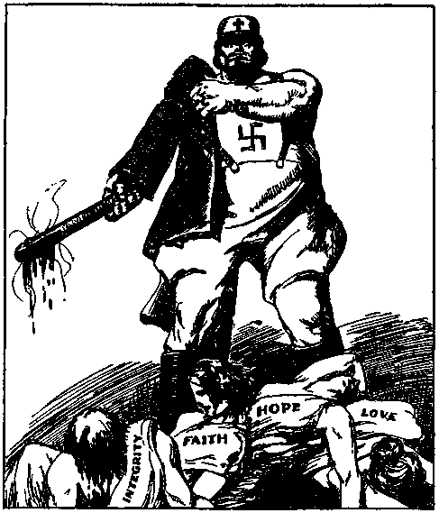 THE super-blasphemy of the Ratti-Hitler Inquisitors is nicely revealed in the following extract from an address made by Herr Wilhelm Becker, regional leader of the Nazi workmen’s organization, before thousands of Hitler-Jugend boys at the Frankfurt Hippodrome: “Centuries which come later will judge the things going on in Germany in a more just light. They will come to the conclusion that Jesus Christ was a great man, but that Adolf Hitler was still greater.” What astounding capacity for disgusting all the rest of mankind such men have I