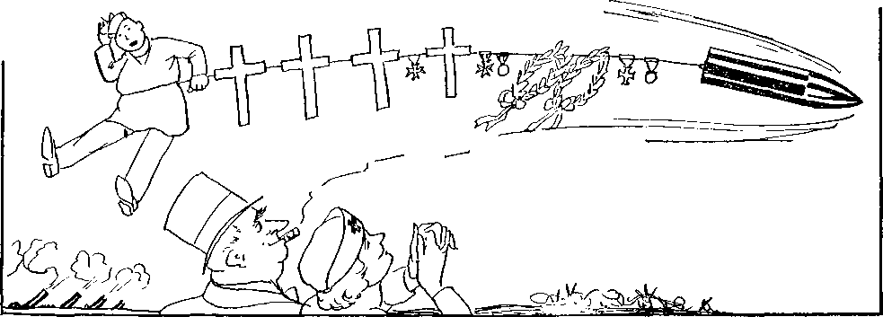 NO ONE will leave Australia for another war without knowing from us that war is profitable only to those who stay at home, and not to all of them—that those who pay most dearly for war are the young and vital, who give their limbs and their intelligence and their beauty—that flag-wagging costs nothing, and that the fat man who says, “Ah, would that I were ten years younger,” will be, more likely than not, a war profiteer before the war is over —that there is little if any glory in modern war —that there is nothing sweet or fitting in dying in a modern war—that the screams of wounded men in No Man’s Land, even if they be enemies, are very painful to hear—that between battles modern war is infinitely more monotonous and boresome than life in the least exciting suburban home—that every soldier going to war should carry a legal contract from the Government against his return—should he return—and that if conscription be deemed necessary, then let us have conscription of wealth and industry as well as of cannon fodder.—Mufti, from the Melbourne Age.