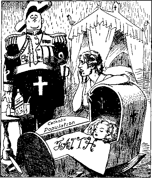 | it lands on the Roman Catholic Hierarchy, the Protestant clergy, big business, rack-