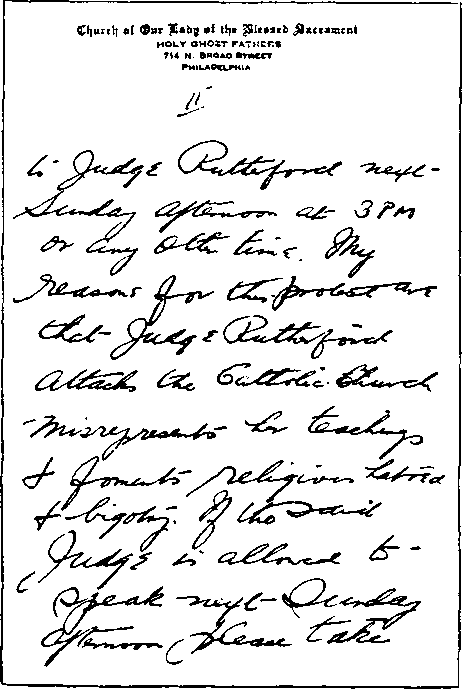 Judge Rutherford Sues Cardinal Dougherty et al.