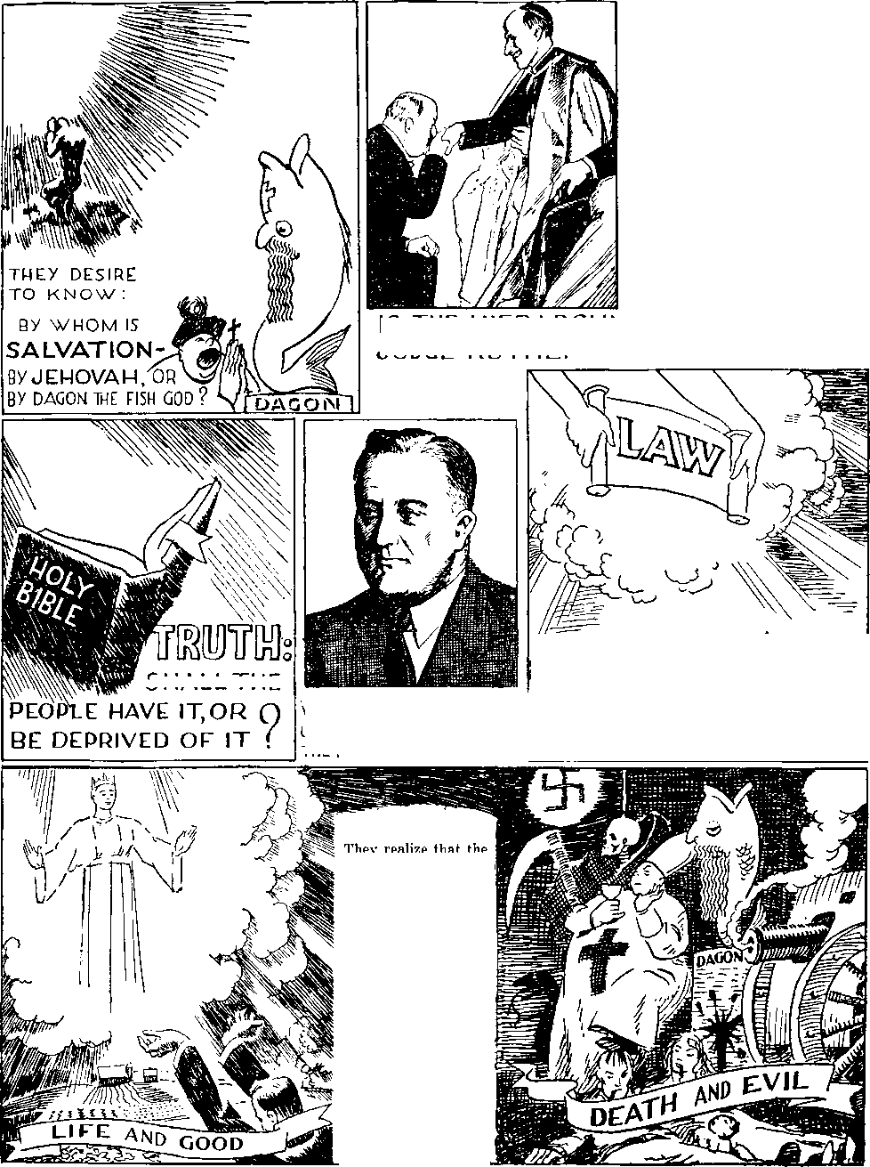 Boss Gold says it is so, and although Gold may be dumb enough to think that the Bible is a Communist textbook, his orders must be obeyed. Therefore this lawyer, who knows better, degrades his position as a counselor and joins in the chorus of hate against an inoffensive people.