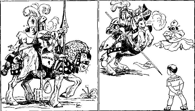 Romance ain’t dead yet. Ye doughty crusader, Mayor Gold, with ye fair Roman Hierarchy riding pillion, fares forth on his dapple gray to make ye world safe for ye same cockeyed damsel. Anon, ye doughty crusader spies ye foe of fearful