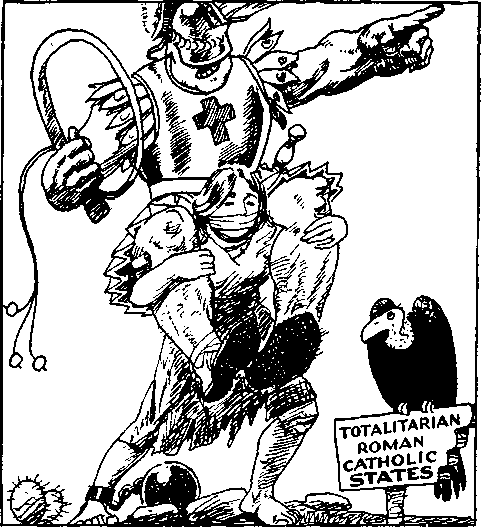 REALIZING that if the Mexican people become educated the Hierarchy is all through in that country, there has been a wave of attacks upon rural schoolteachers. Twelve were killed in one month; two had their ears cut off. Twelve Catholic fanatics were arrested, charged with the attacks and murders.
