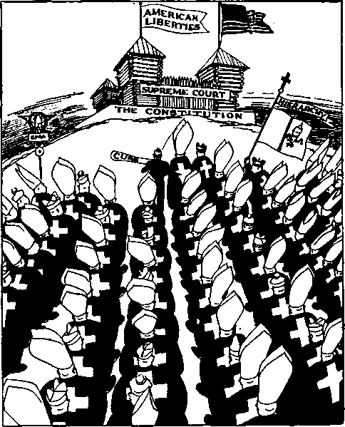 [Taken from “THE STATE AND THE CHURCH” (page 35). Written and edited for The Department of Social Action of The National Catholic Welfare Council by John A. Ryan, D.D., LL.D., Professor of Moral Theology at the Catholic University of America, and Moorehouse F. X. Millar, S.J. Imprimatur Patrick J. Hayes, D.D., Archbishop, New York, 1922.]