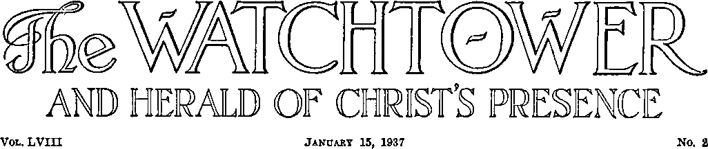 This is to announce the Society’s issuance of a new year book for use during 1937. It contains the comprehensive leport by the president of the Society covering the work accomplished during the service year 1935-1936 by Jehovah through his witnesses and their companions throughout the world. The information included therein is most valuable, especially in view of the war now on with the religionists. There is also a brief discussion by the president on the 1937 year text; additionally a text for each day of the year together with an enlightening and encouraging comment taken from The Watchtower. In view of the special expense of publishing such a limited edition as that of the Year Book a contribution is asked of 50c a copy. Please order now, sending remittance with order. Groups will place individual orders with their local servant, so as to spare the Society much time and expense in shipping.