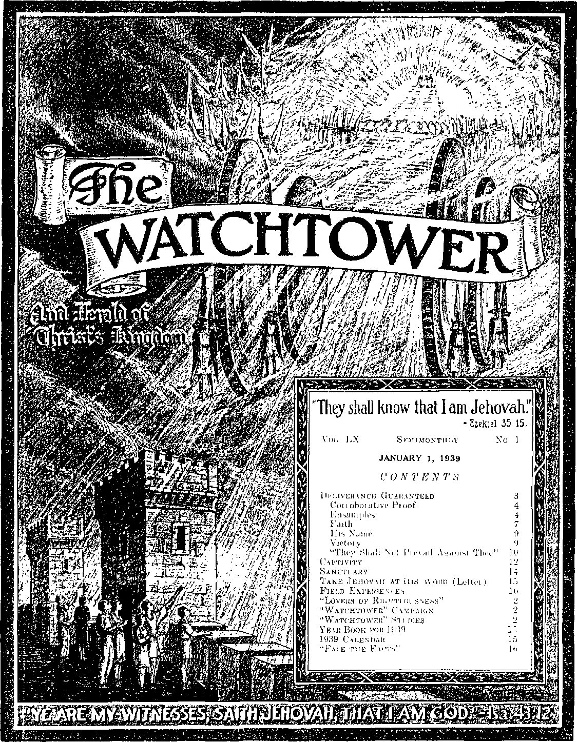 “Jeremiah had no personal fight with the men of Israel. He was sent as God’s messenger to proclaim the judgment of Jehovah that the people might know Jehovah’s purpose. Likewise today Jehovah’s witnesses, in fulfillment of the prophetic picture made by Jeremiah, have no fight with men on earth, but are sent as the messengers of Jehovah to declare unto the people God’s judgments already written and to inform them according to God’s Word what will be the result; and this they do to the end that those of good will toward God might be informed and flee to safety. The words of Jehovah given to Jeremiah now with stronger force apply to Jehovah’s witnesses, to wit: “I will utter my judgments against them touching all their wickedness, who have forsaken me and have burned incense unto other gods, and worshipped the works of their own hands.” Of the very things described by these words of the Lord “Christendom” is guilty, and Jehovah’s adverse judgment is written against “Christendom”, and particularly against the religious element led by the Roman Catholic Hierarchy. That religious Hierarchy falsely and blasphemously claims to represent God on the earth. They have kept the Bible away from the people and thereby kept the people in total ignorance of Jehovah’s purpose and of his loving-kindness, as well as of his severity against those who disobey him. The judgment written against the Boman Catholic Hierarchy and like religionists means their complete undoing, because it states the following, to wit: "Judgment also will I lay to the line, and righteousness to the plummet; and the hail shall sweep away the refuge of lies, and the waters shall overflow the hiding place. And your covenant with death shall be disannulled, and your agreement with hell shall not stand; when the overflowing scourge shall pass through, then ye shall be trodden down by it.”— Isa. 28:17,18.