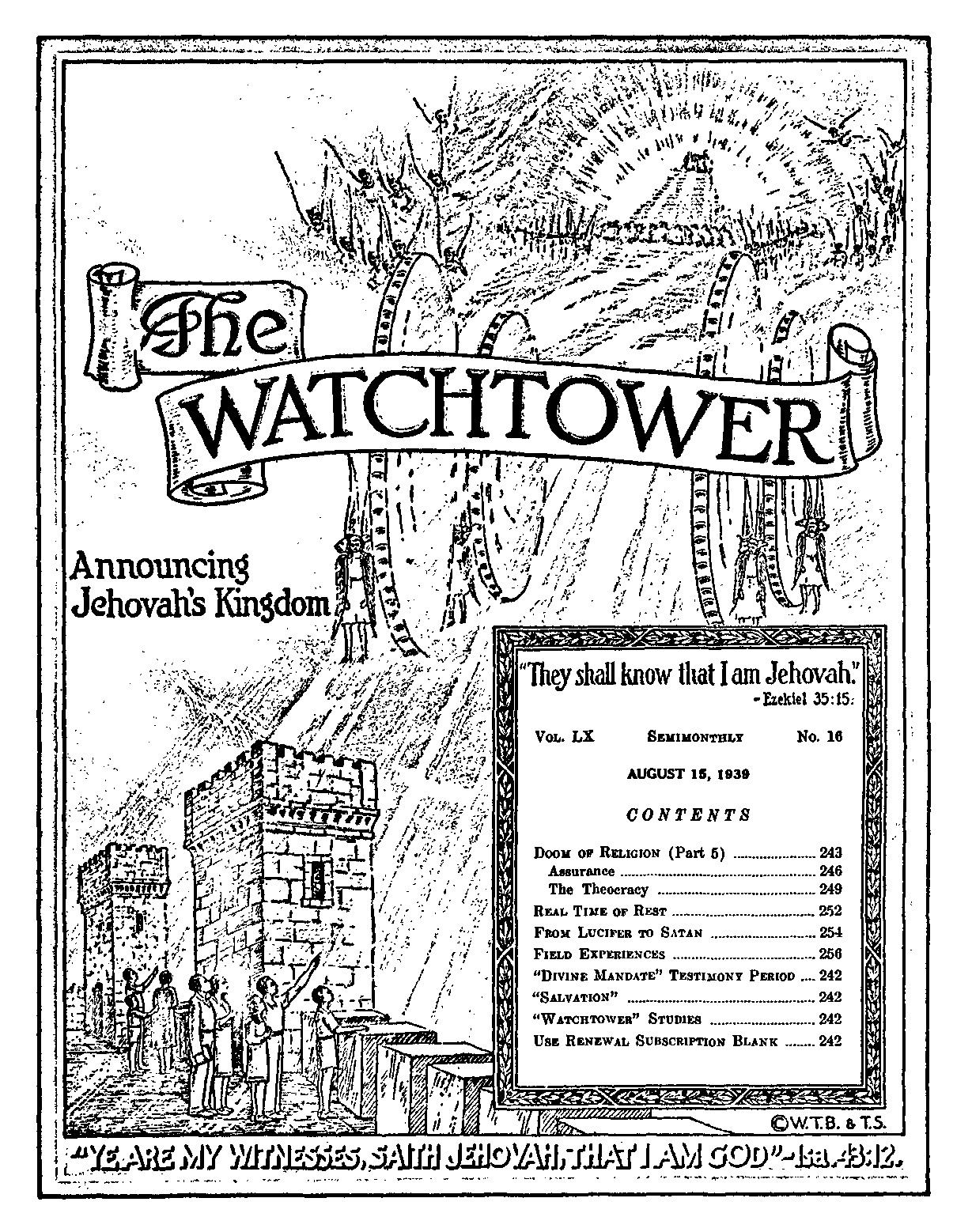 Week of September 17: “Doom of Religion” (Part 5), 1-25 inclusive, The Watchtower August 15, 1939.