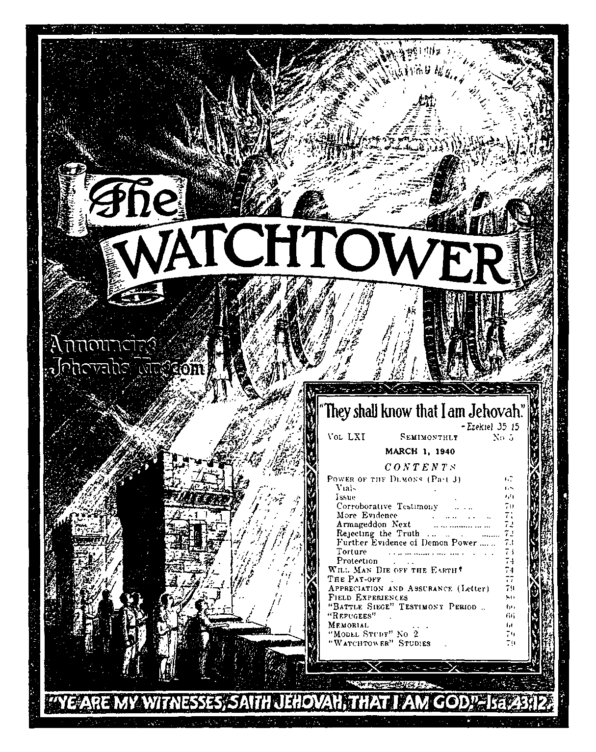 Week of April 14- “Power of the Demons” (Part 3), fl 19-41 inclusive, The Watchtower March 1, 1940