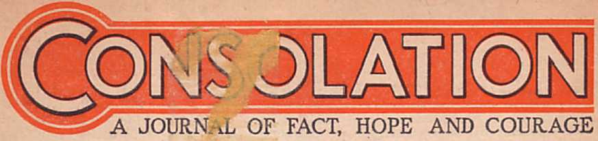 You need this information. Send in your subscription for CONSOLATION magazine and have it coming to you, by mail, every two weeks. One year’s subscription, 26 issues, for a contribution of $1.00. CONSOLATION is published every other Wednesday.