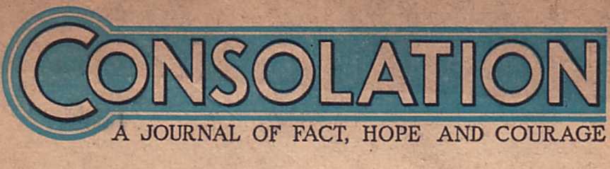QONSOLATION stands out unequivocally above all other magazines as a conveyor of reliable news and basic facts. CONSOLATION magazine makes available the truth on a wide variety of subjects of interest and importance. Its columns are not open to commercialism. It is devoted solely to enlightening and instructing people as to world conditions, the cause, and the outcome.