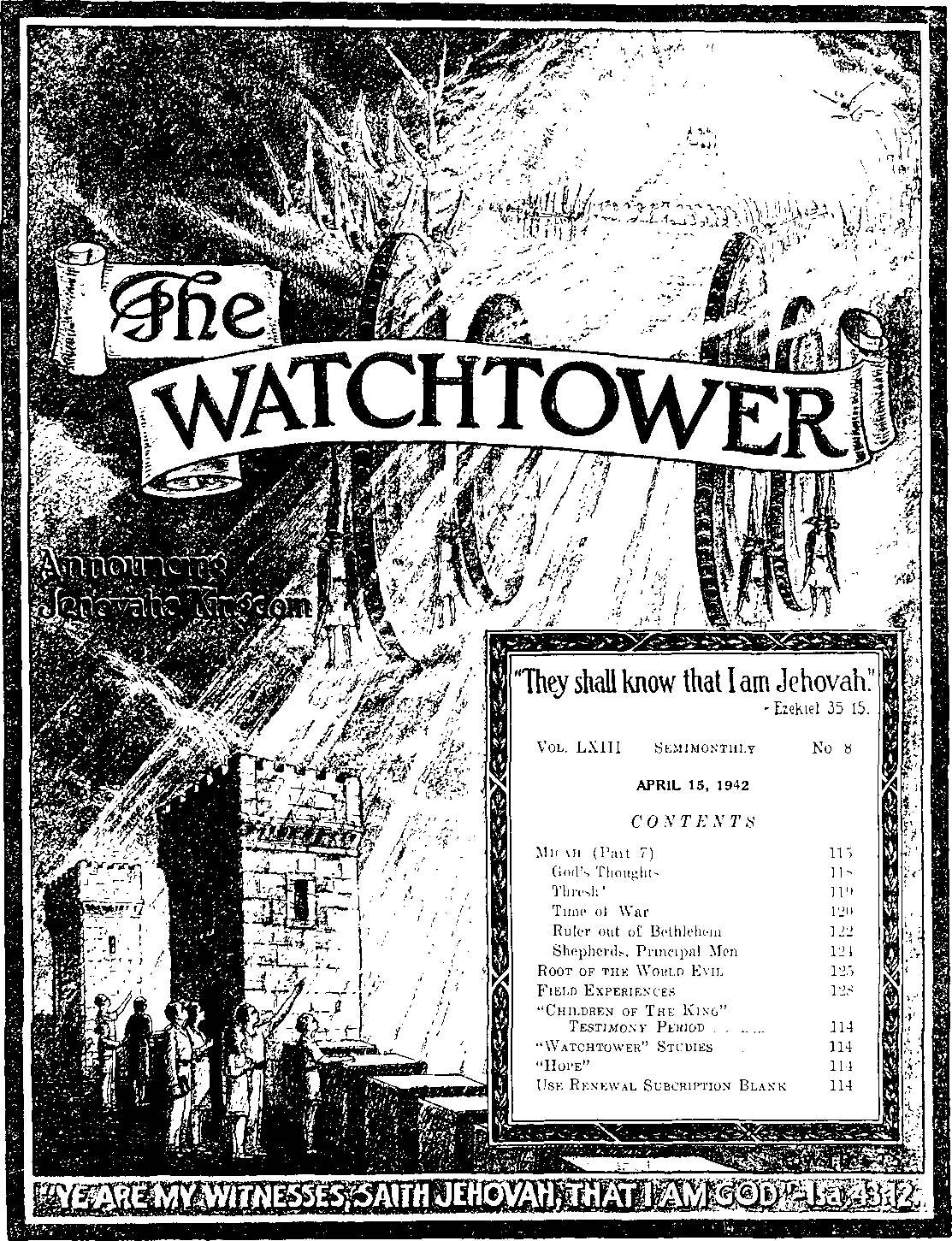 Week of May 17: “Micah” (Part 7), fl 1-14 inclusive, The Watchtower April 15, 1942.