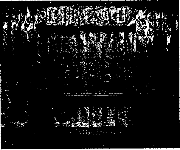 Passing to the end of the corridor one enters into the college assembly room, 65 feet by 48 feet, and large enough to seat 300 persons. At the eastern end is a large carpeted podium, of two steps up, on which stands an ornate walnut table, six feet long, on which is a golden damask throw. On the wall immediately behind are gorgeous damask drapes of golden brocade. In the center thereof, overhead, is a banner of like material, with gleaming golden block-letters reading “GILEAD”. On pulling a cord the central drapes part, revealing, underneath, a blackboard for the service of any instructor or lecturer demonstrating on the platform. On the ceiling, just in advance of the speaker’s table, there is a battery of four long, fluorescent illuminating tubes that produce a power light without glare. Other lights with elegant refracting mantles are so spaced as to give evenly distributed light throughout the auditorium. Natural light is allowed by large French ~ style casement windows which swing outward