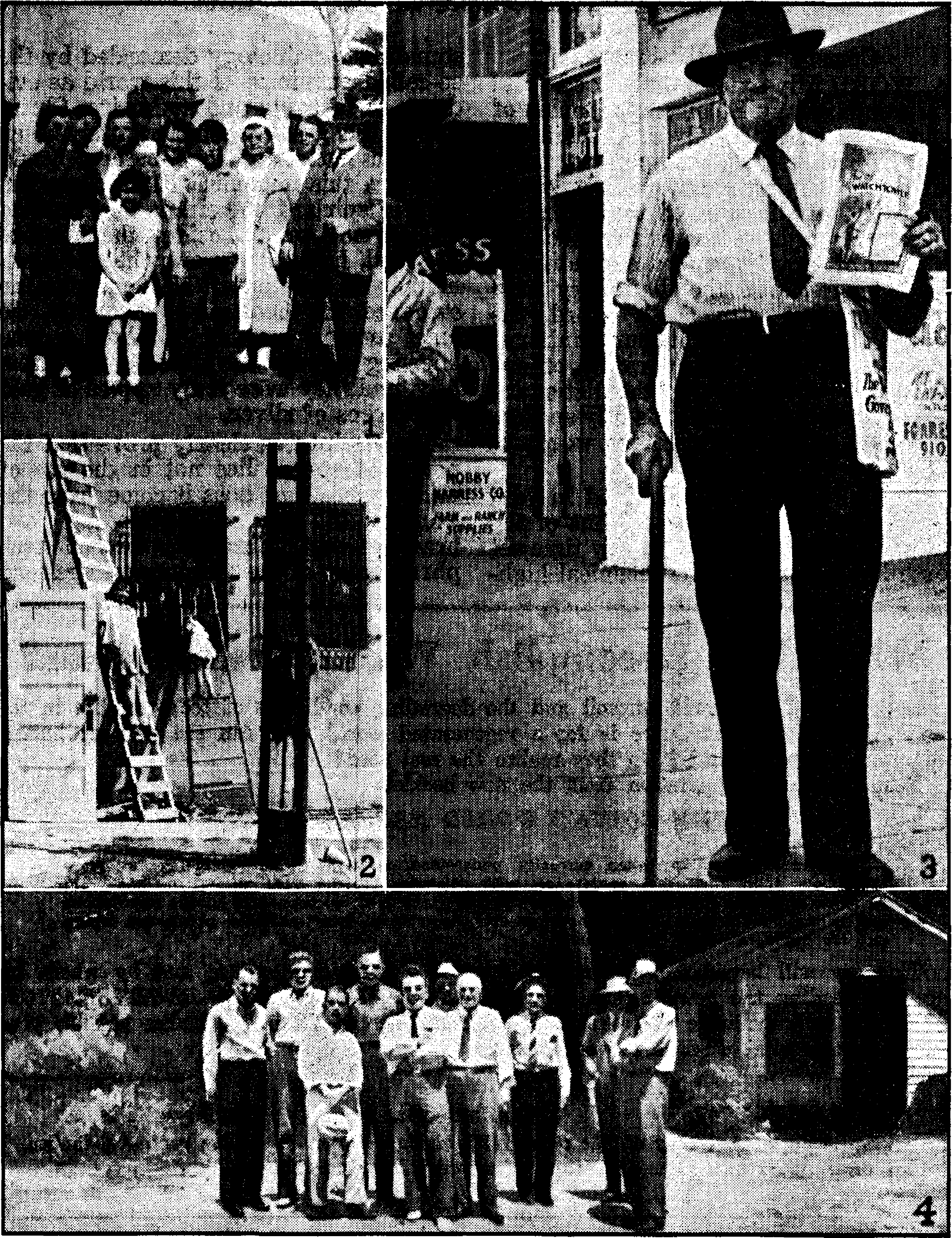 ESUS was numbered with the transgressors. (Isaiah 53:12) His followers have like experience. In the accompanying page of pictures No. 1 shows a group of Jehovah’s witnesses that were arrested in Chandler, Ariz., for proclaiming the message of God’s kingdom. In the same town a mother was jailed for preaching the gospel. (No. 2) When these little ones tried to visit with their devoted mother the authorities there, desperately frightened (one of the youngsters is 4), locked the ladders up so that no jail deliveries might occur. In No. 3 you see a 70-year-old Theocratic publisher of good news, whose wife and five children are likewise serving God, two of them devoting their entire time to witnessing for the Kingdom. He, like other witnesses, fears neither man nor devil. Out of jail and back, he continues to advertise Christ the King and His Kingdom, in Fort Worth and vicinity. In No. 4, the eight at the left (their attorney and the San Antonio company servant are at the right) were held 19 days in Jourdanton, Tex., for preaching the gospel. In this lawless town the Roman Catholic Church is next door to the jail. However, the jailed witnesses were shown many kindnesses; both the jailer’s wife and sheriff’s wife seemed happy at their release. It is recalled that Pilate’s wife counseled him to have nothing to do with Jesus’ execution.
