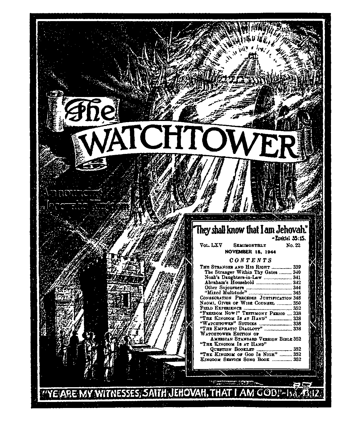 Week of December 24: “The Stranger and His Right,” fl 1-23 inclusive, The Watchtower November 15, 1944. Week of December 31: “The Stranger and His Right,” fl 24-43 inclusive, The Watchtower November 15, 1944.