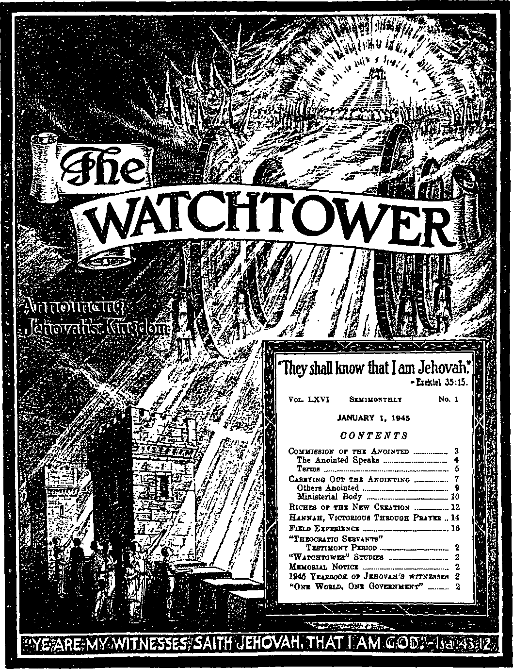 Week of February 11: “Carrying Out the Anointing,” T 1-23 inclusive, The Watchtower January 1, 1945.