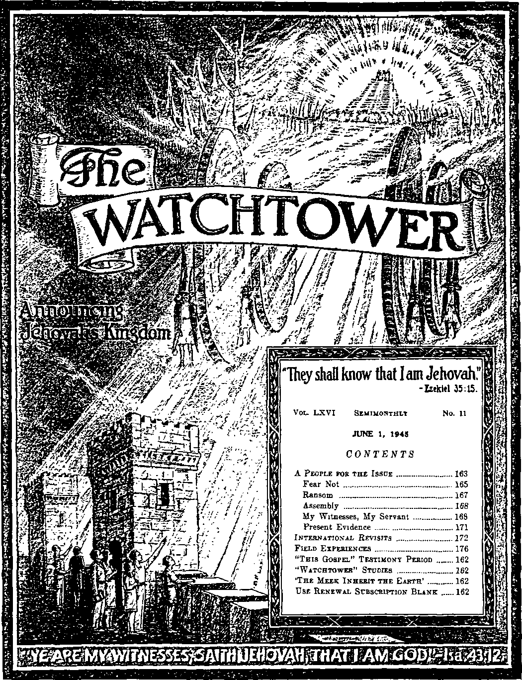 Week of July 1: “A People for the Issue,” 1-19 inclusive, The Watchtower June 1, 1945. Week of July 8: “A People for the Issue,” fl 20-40 inclusive, The Watchtower June 1, 1945.