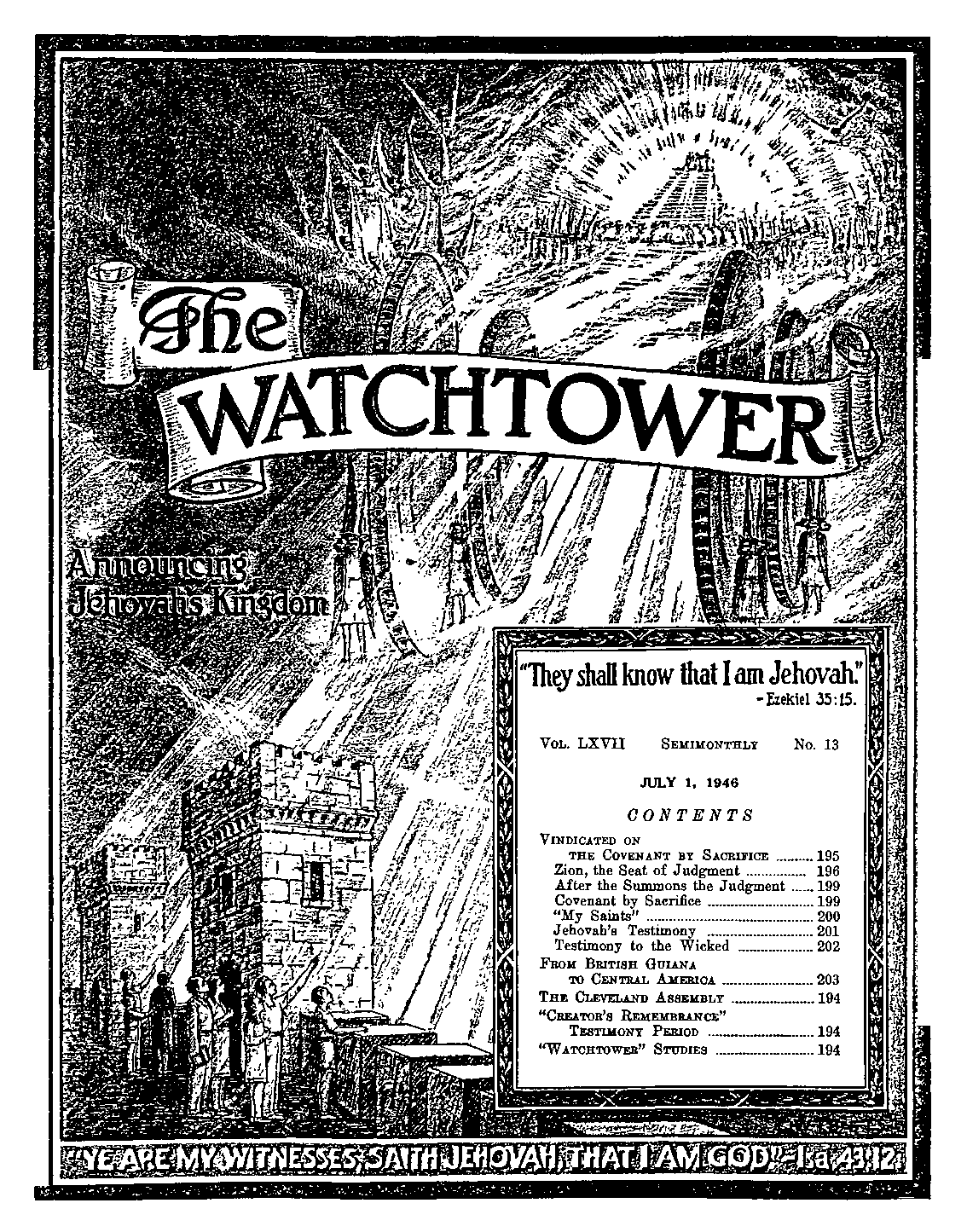 Week of August 4: “Vindicated on the Covenant by Sacrifice,” fl 1-20 inclusive, The Watchtower July 1, 1946.