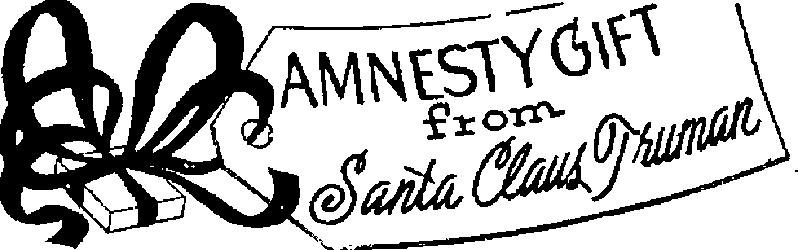 During February, 1947, this amnesty board held hearings and the majority of the witnesses and organizations testifying favored a prompt and general amnesty. But when “amnesty” came it was neither prompt nor general. Exactly one year after formation of the board it had completed its work and hobbed up with the result—an empty bag. Santa’s little helpers handed the bag to their chief, he took it, and now he holds it. From its folds he searched and finally found the product of a years work by the amnesty board, namely, a token amnesty hi the form of a handful of pardons. These mastime, on December 23, 1947. The newspapers spoke of the miserly dole of pardons as Christmas gifts. But what are the facts that proclaim Truman a stingy Santa with an empty sack? For them go to the