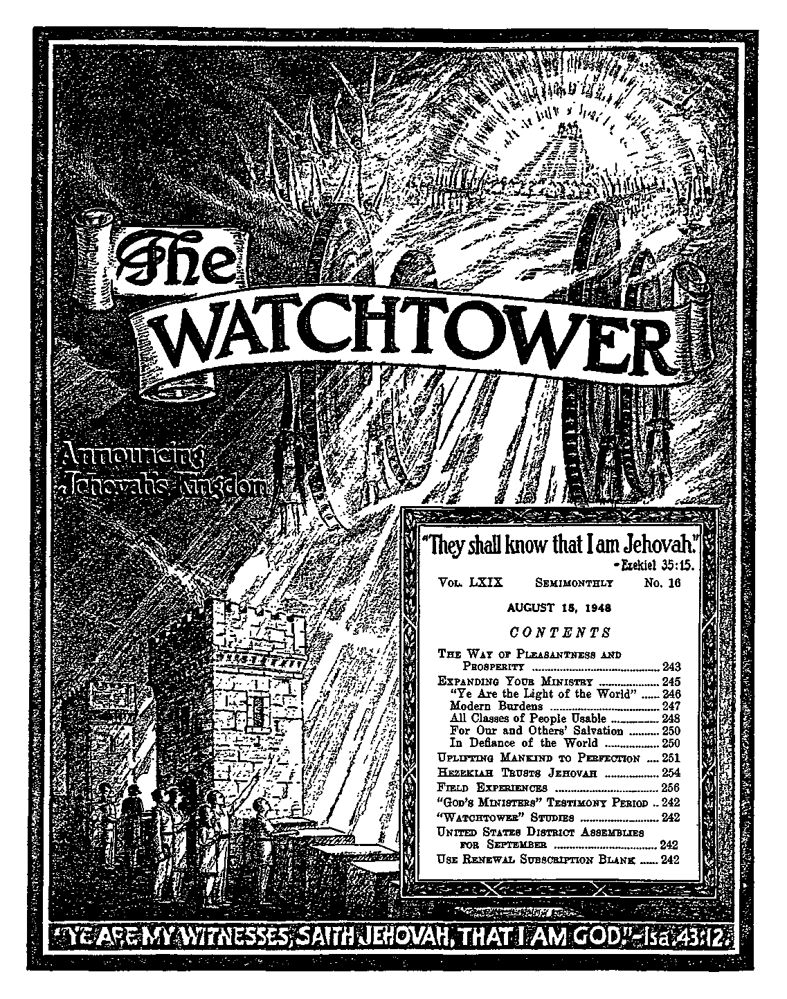 Week of September 26: “Expanding Your Ministry,” § 14-33 inclusive, The Watchtower August 15, 1948.