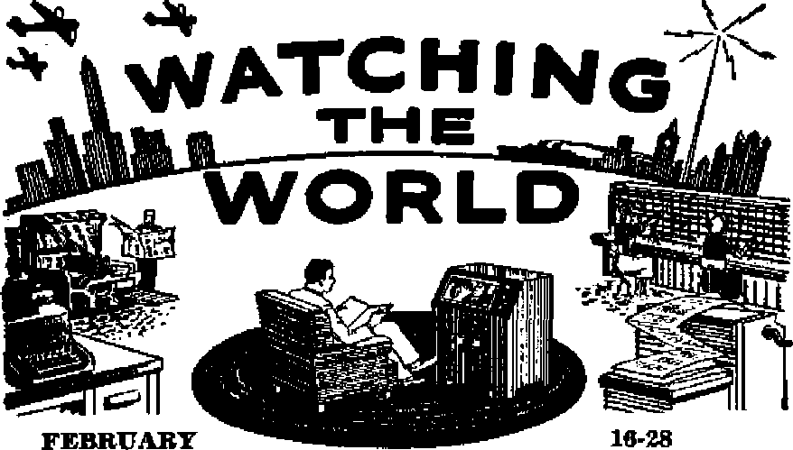 <§> The hydrogen hnnib with Its super-destructive powers was very much nn the minds of the world’s leaders, and also very much in the news, in late February. Fnur top scientists expressed the possibility of its destroy io g all life on earth by radioactive dusts, and so ending the world. Winston Churchill of Britain continued to urge talks between the U. S., Russia and Britain to seek security against atomic war. Prime minister Attlee, however, declared that the United Nations was the proper forum for such a discussion. President Truman continued to bor talks with Russia alone on the bomh, saying the doors of U. S. embassies everywhere were opeo to overtures on the part of Russia, and that the U. S. will coniine negotiations on the matter to the U. N. Senator Tydings said the president’s policy was one of “sitting still and waiting for disaster”. Senator Connally was hopeful that the Soviet would clear the way for discussions. Harold E. Stassen proposed a “mid-century conference” of U. S. and Soviet leaders so as to avert a third world war. The secretary general of the U. N. suid he was in favor of negotiations “all the time and on all levels-the top level, the middle level, and the lower level—inside the U. N. and outside the U. N.” Truman stood pat. A member of the Senate-Honse Atomic Committee proposed a second capital for the