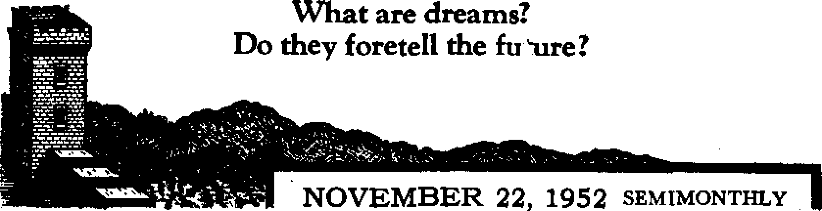 Investigators state that the average dream lasts “only about thirty seconds, though it may seem to go on all night”. This “time” dream is told In Ratcliff's book, A History of Dreams: "At the first stroke of midnight by the parish*clock, a certain man fell asleep, and dreamed a dream. He ran away to sea, served on board ship for a long time, and, just escaping with his life from a shipwreck, swam to a desert island. No rescue arriving he began to abandon hope, when at last a ship hove in sight and took him on board. He became a ringleader In a successful mutiny, took charge of the ship himself and sailed it across remote and uncharted seas. At length wearying of this life, he sailed for England, sold the ship and entered business on shore. One day, some one recognized him as a mutineer; he was arrested and tried, and when the noose was round his neck, and he was expecting death at any moment, he awoke with a start, and heard—the last of the twelve strokes of the clock” As fantastic as this might seem, yet it is said that drowning men in their last moments see all the events of their lifetime pass before their eyes in a swift vision. In a similar way, events occur before us in dreams, so some say.