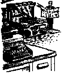 builds the tire Ln the oven to heat it to baking temperature, then she rakes out the fire and places the biead or biscuits inside, closing the door and sealing it by packing it with sugar sacks or other material When the baking is done the baked goods are placed in what they call a safe. This is a cupboard-like affair entirely screened in to keep away the bugs and flies. Sometimes the cupboard’s legs are placed in cans of kerosene to discourage hungry and ambitious ants from taking away the spoil.
