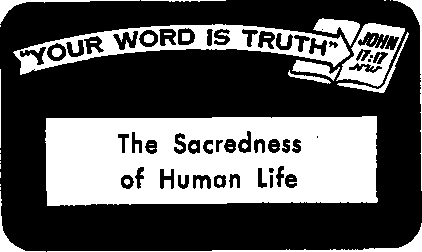 HOW sacred is human life? In these days of war and woe life is about the cheapest commodity on the market. While values of almost every other thing have gone up, the market on human life has shown a decided downward trend. Machines and gadgets are gradually replacing man and he is slowly becoming obsolete in his own society. It is a case of man outsmarting himself. The countless potentialities locked up within him are restrained. A modern society that he has built has confined him to a production line, has turned him into a one-job man. His other talents are restrained. The powers within him to expand, do other things, well up, but these must be confined, resulting in frustration, depression, dissatisfaction. Consequently, the value on really living has decreased markedly.