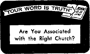 SO OFTEN we hear people say, I belong to the Catholic church; or, I am a member of a Protestant church; or, I attend a Jewish synagogue. And still others will say, I do not belong to any church. Whatever may be your case, it is your desire to be associated with the right church and to do what is right. But in a land of many religions all claiming to be right, how can one know definitely which is the right church? Is there a way to identify the true church, and what is that way? To find the answer to our questions will take just a little time and study along with an honest appreciation of the facts. For example: Knowing quality merchandise will help us pick the right product, without a great amount of ado. Knowledge of money will protect us against counterfeiters. A few basic points about mechanics will assist us in choosing the right car. In the field of religion a few good Scriptural references will help us clear this subject of “the right church.”