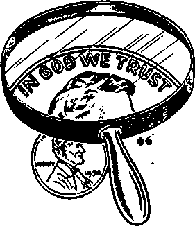 The motto “In God We Trust” obviously does not reflect the true faith of the nation. It may be a beautiful motto, it may sound nice, it may even give the nation a clean outward appearance, but it does not speak the truth. Trust in God must be evidenced by right works, moral health and spiritual prosperity. Jesus rebuked the scribes and Pharisees, calling them hypocrites because they cleansed “the outside of the cup and of the' dish, but inside they are full of plunder and immoderateness.” First let nations cleanse themselves of their crime, corruption and immorality and Aim to his kingdom by Christ, and then let them declare their trust in God. Otherwise, their mottoes that implicate God are a taking of his name in vain.—Matt. 23:25, 26.