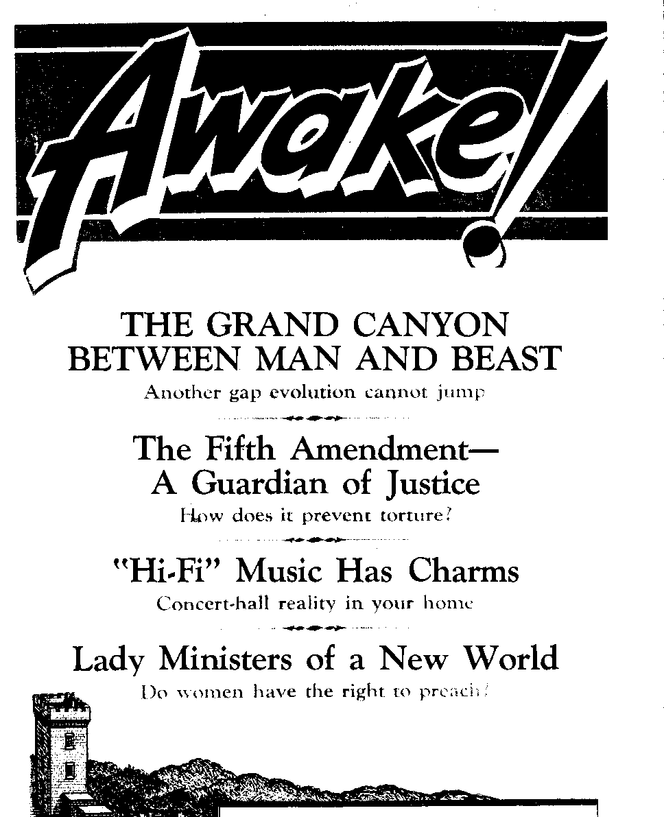 News sources that are able to keep you awake to the vital issues of our times must be unfettered by censorship and selfish Interests. “Awake!” has no fetters. It recognizes facts, faces facts, is free to publish facts. It Is not bound by political ambitions or obligations; It Is unhampered by advertisers whose toes must not be trodden on; It Is unprejudiced by traditional creeds. This Journal keeps Itself free that it may speak freely to you. But it does not abuse its freedom. It maintains integrity to truth.
