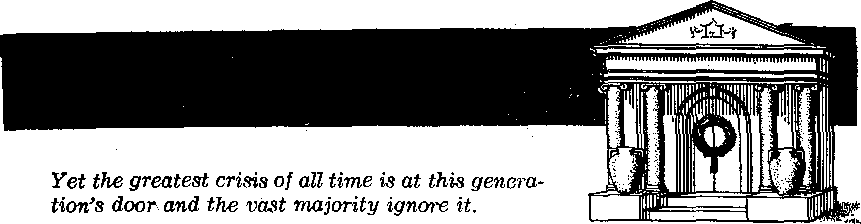 WHAT is the reassuring message of the stirring 384-page book bearing that, title. From its opening chapter, “Proclaiming the Good News,’’ to its last, “Individual Decision Now for Surviving Armageddon,” you will be gripped with the overwhelming proof that the greatest catastrophe of all time impends and that the way of escape is at hand! Forty-two types and prophecies of the earthly heirs of the new world add documentary evidence from the Bible.