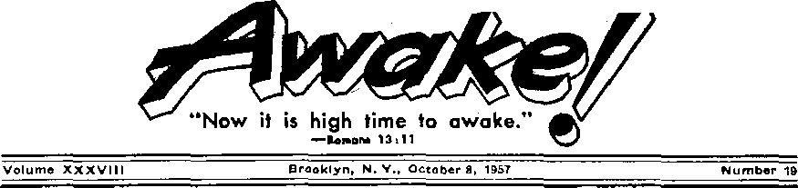 It is instructive,-inspiring, wholesome reading far every member of the family. Safeguard your family's outlook. Moke Awake! a welcome member of the family. It is $1 for one year. Send today and receive free three booklets.