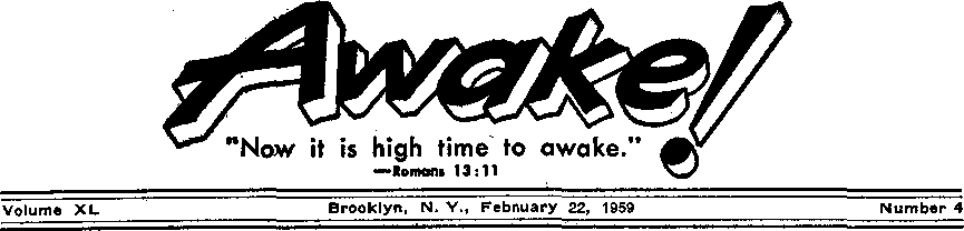 News sources that are able to keep you awake to the vital issues of our times must be unfettered by censorship and selfish interests. "Awake!" has no fetters. It recognizes facts, faces facts, is free to publish facts. It is not bound by political ambitions or obligations; it is unhampered by advertisers whose toes must not be trodden on; it is unprejudiced by traditional creeds. This journal keeps itself free that it may speak freely to you. But It does not abuse its freedom. It maintains integrity to truth. .
