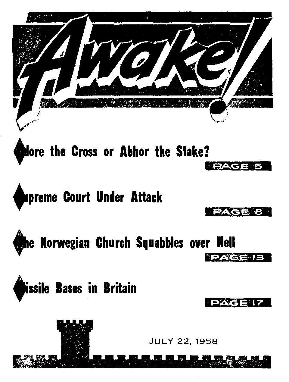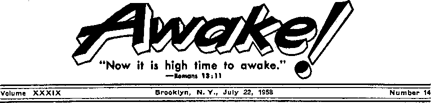 News sources that are able to keep you awake to the vital issues of our times must be unfettered by censorship and selfish Interests. "Awoke!" has no fetters. It recognizes facts, facet facts, is free to publish facts. It is not bound by political ambitions or obligations; it is unhampered by advertisers whose toes must not be trodden on; it is unprejudiced by traditional creeds. This journal keeps itself free that it may speak freely to you. But it does not abuse its freedom. It maintains integrity to truth.