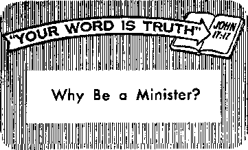 BEING a Christian minister is, perhaps, one of the most difficult of all jobs. In the first place, Christ has not shielded the way of his ministry in such a manner so as to make it attractive to softies and to worldlings who look for a life of popularity, public esteem, social honors, political protection, ease, comfortable salaries, flattering titles, and other things that would draw a self-seeker. Such things are paid Christendom’s ministers; still they constantly complain of being understaffed, overworked and underpaid. However, the true follower of Christ Jesus does not get these attractive offerings, neither does he want them.