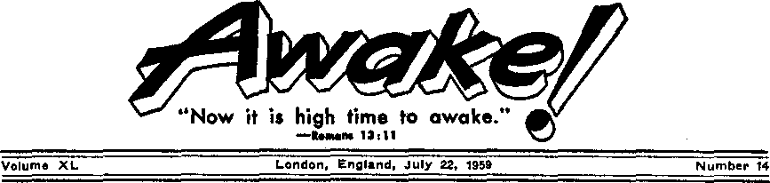 "Awake!" uses the regular news channels, but Is not dependent on them. Ite own correspondents are on all continents, in scores of nations. From the four corners of the earth their uncensored, on-the-scene* reports come to you through these columns. This journal's viewpoint is not narrow, but is international. It is read in many nations, in many languages, by persons of ail ages. Through its pages many fields of knowledge pass in review—government, commerce, religion, history, geography, science, social conditions, natural wonders—why, its coverage is as broad as the darth and as high as the heavens.