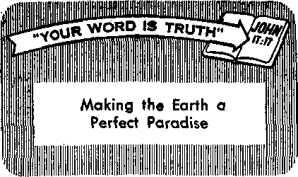 IN THIS day of atomic and hydrogen bombs, of rockets and intercontinental ballistic missiles, the making of the earth into a perfect paradise seems a little too farfetched even to most optimistic persons. A charred earth would be more in keeping with the evidences that now confront the human race. However, the New World society of Jehovah’s witnesses declares that a paradise earth for all mankind is a timely message, in fact, the message of the hour. Upon what authority does it base its hopeful outlook? It rests its case on the highest authority given to man, namely, the Holy Bible.