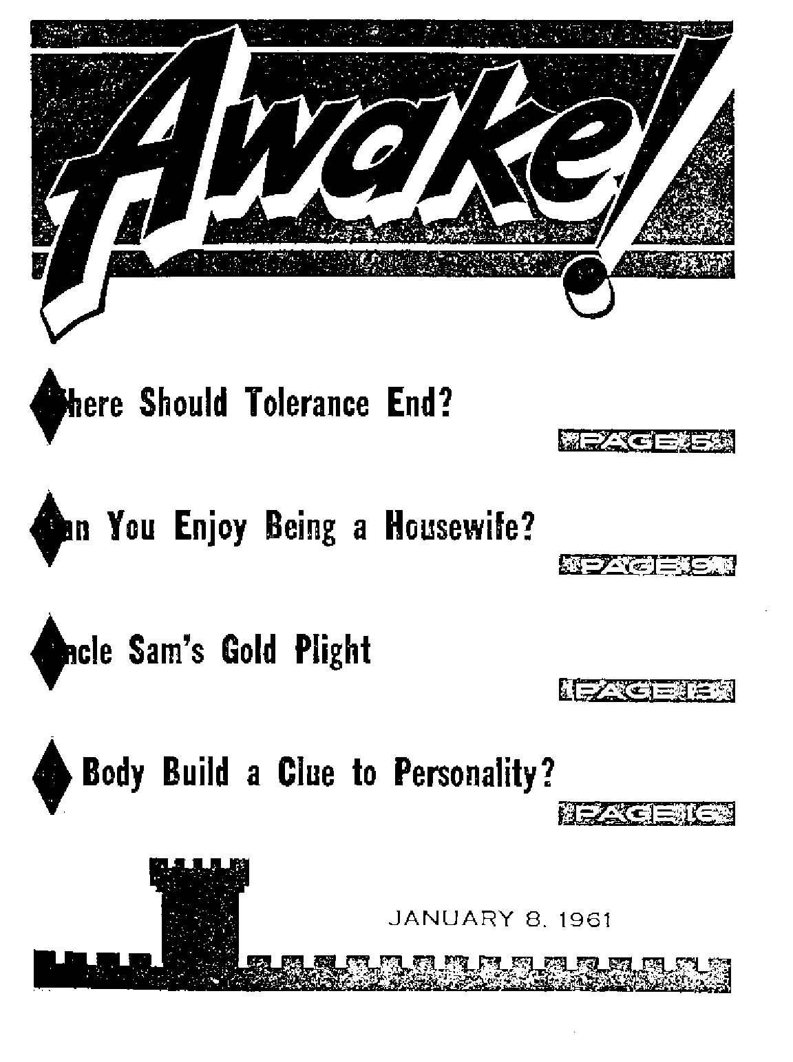 Naw* source* that are able to keep you awake to the vital Issue* of our time* mult bo unfettered by ceniorihip and ie|fl*h Interest*. "Awoke!" has no fetters. It recognlu* facts, face* facts, I* free to publish facts. It is not bound by political ambitions or obligations; It I* unhampered by advertisers whose toes must not be trodden on; It Is unprejudiced by traditional creeds. This journal keeps itself free that it may speak freely to you. But It does not obuse its freedom. It maintains integrity to truth,