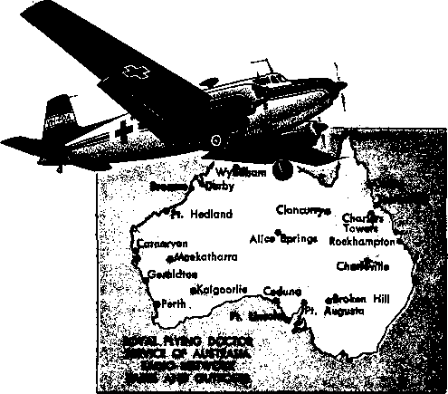 Doubtless, in times of need the majority of people living in cities or towns would call their family doctor by phone, but many of the inhabitants of the vast central areas of Australia rely on radio transceiver sets that carry their calls hundreds of miles to a Royal Flying Doctor Service base. Your doctor may respond to your call by automobile, but in the enormous expanses of the interior of Australia, where distances are often measured, not by miles but by days, most likely the doctor will come on wings.