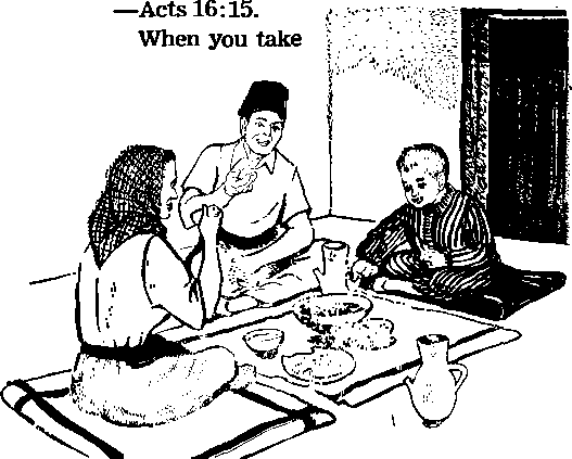 The Christian shows his thoughtfulness by being punctual not only for material meals but for spiritual meals, at the Christian congregation. Being on time for public lectures, for instance, shows respect for the speaker, whose carefully prepared introduction sets the theme and scope of the discourse. Above all, being on time for Christian meetings shows respect for the organization that has sponsored- them.