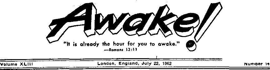 Newt sources that are able to keep you awake to the vital Issues of our times must be unfettered by censorship and selfish interests. "Awake!" has no fetters. It recognizes facts, faces facts, is free to publish facts. It is not bound by political ambitions or obligations; it is unhampered by advertisers whose toes must not be trodden on; it is unprejudiced by traditional creeds. This journal keeps itself free that it may speak freely to you. But it does not abuse its freedom. It maintains integrity to truth.